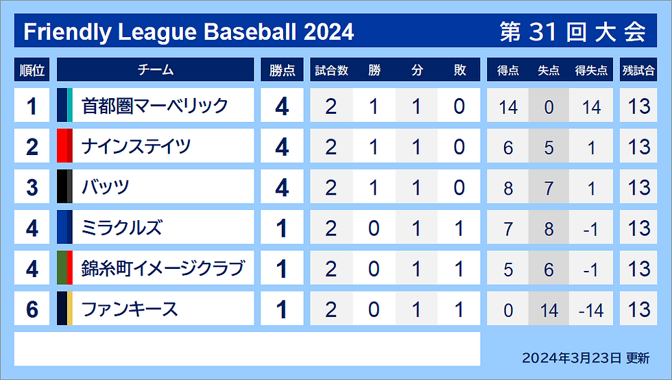 フレンドリーリーグの皆さま、お疲れさまです。