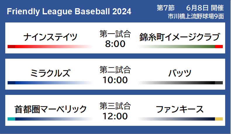 次節は、全試合「市川橋上流野球場9面」での開催になります!
