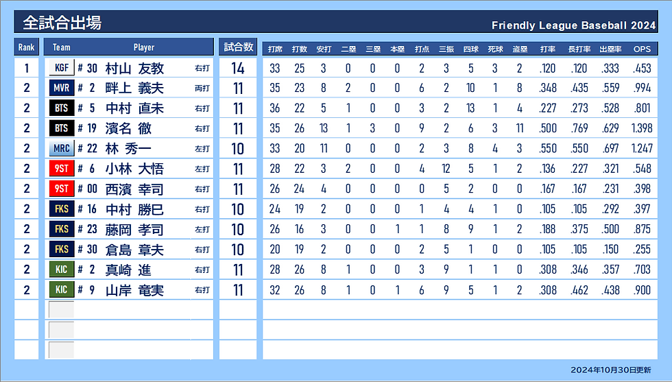 ◎チーム別全選手成績(詳細は画像をクリックしてご確認ください)